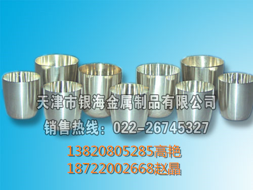 天津市銀海金屬制品有限公司主要生產(chǎn)加工鉑金坩堝、鉑金皿、黃鉑合金異形坩堝、鉑金絲、黃金坩堝、銀坩堝、銀燒杯、鐵坩堝、鎳坩堝、包鉑坩堝鉗子、瑪瑙研缽、純銀絲、純銀片、銀粉、剛玉坩堝等金屬制品,我公司的生產(chǎn)工藝嚴謹、技術先進、經(jīng)驗豐富,產(chǎn)品銷往全國各地。 公司承諾:保證產(chǎn)品價格優(yōu)惠、質(zhì)量可靠,熱情周到的服務,歡迎廣大新老客戶選購我公司產(chǎn)品。